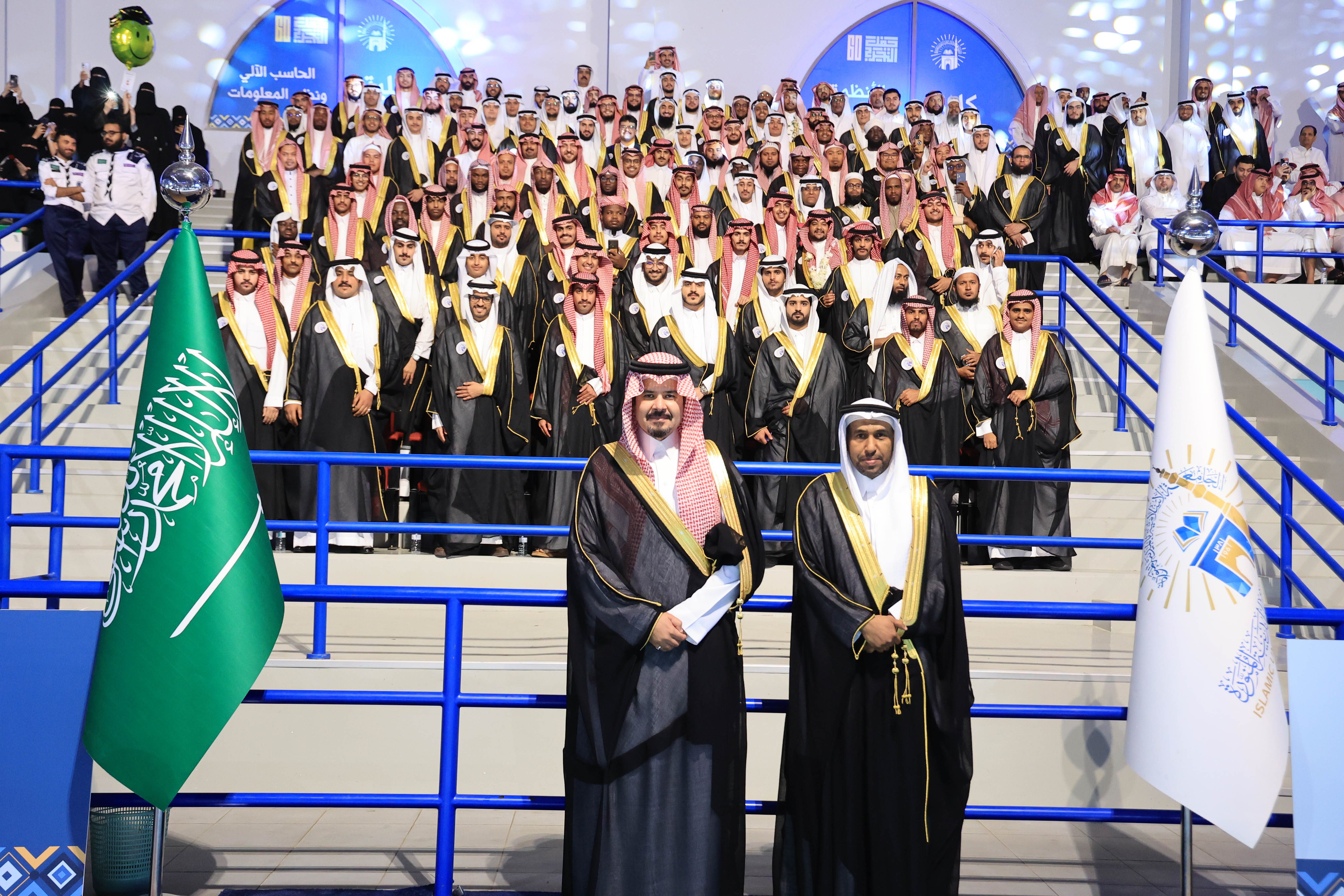 الأمير سلمان بن سلطان أمير منطقة المدينة المنورة، في صورة جماعية مع طلاب الجامعة الاسلامية الخريجين الدفعة الستين.