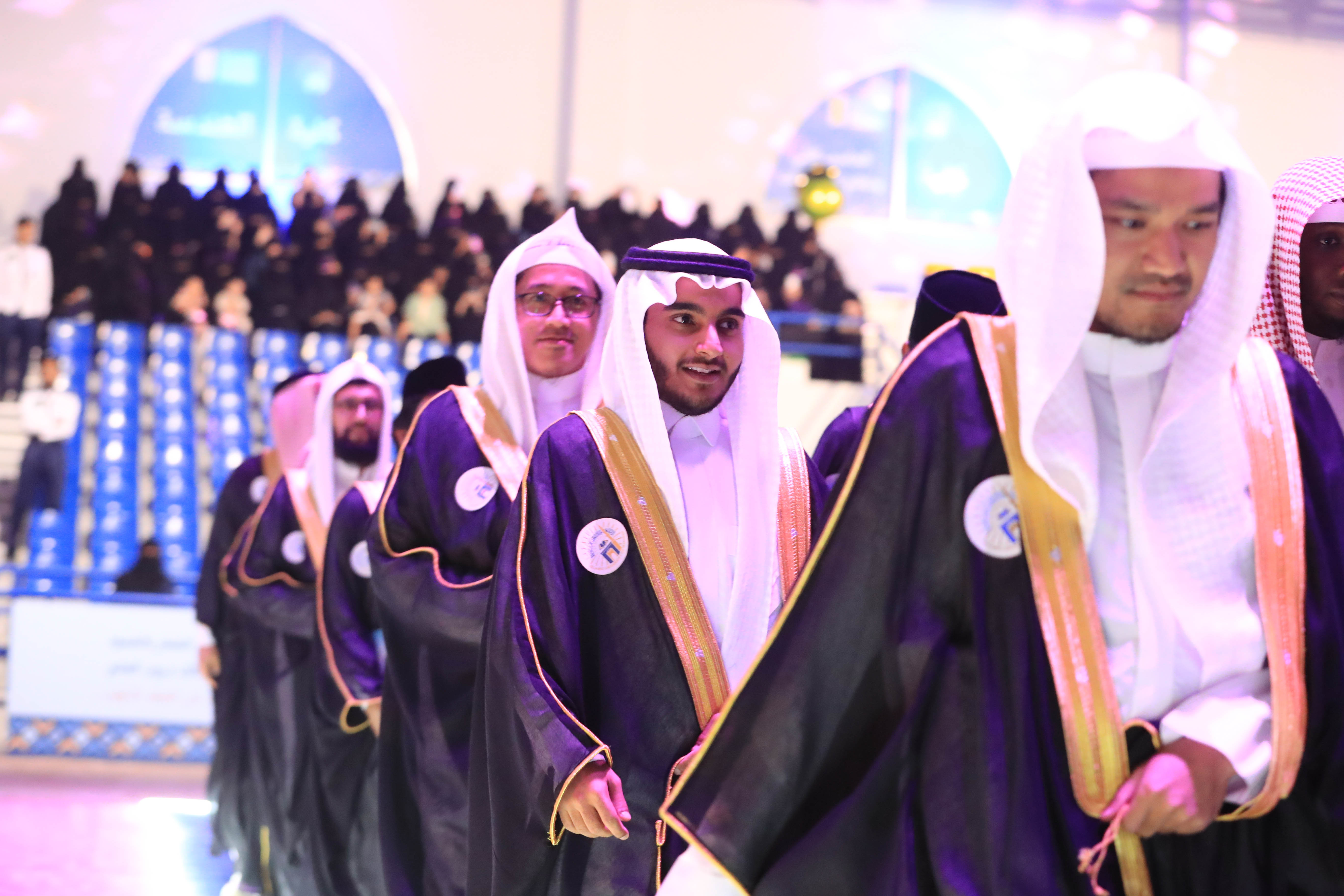 وبدأت فقرات الحفل بالسلام الملكي ثم انطلقت مسيرة الخريجين، ثم شاهد الحضور عرضاً مرئيًا عن مسيرة الجامعة، وألقى الخريج أنس غازي سحلول، كلمة نيابة عن زملائه خريجي الجامعة الإسلامية، تحدث خلالها عن منظومة التعليم في الجامعة في ظل دعم ورعاية حكومة خادم الحرمين الشريفين وسمو ولي عهده الأمين – يحفظهما الله – مشيراً إلى دور الجامعة في تعزيز رسالة الوسطيّة والاعتدال ونشر العلم خدمةً للعالم الإسلامي، مقدماً نيابة عن زملائه الخرجين شكرهم للمملكة العربية السعودية على هذا الفضل الذي لن ينساه الأوفياء.