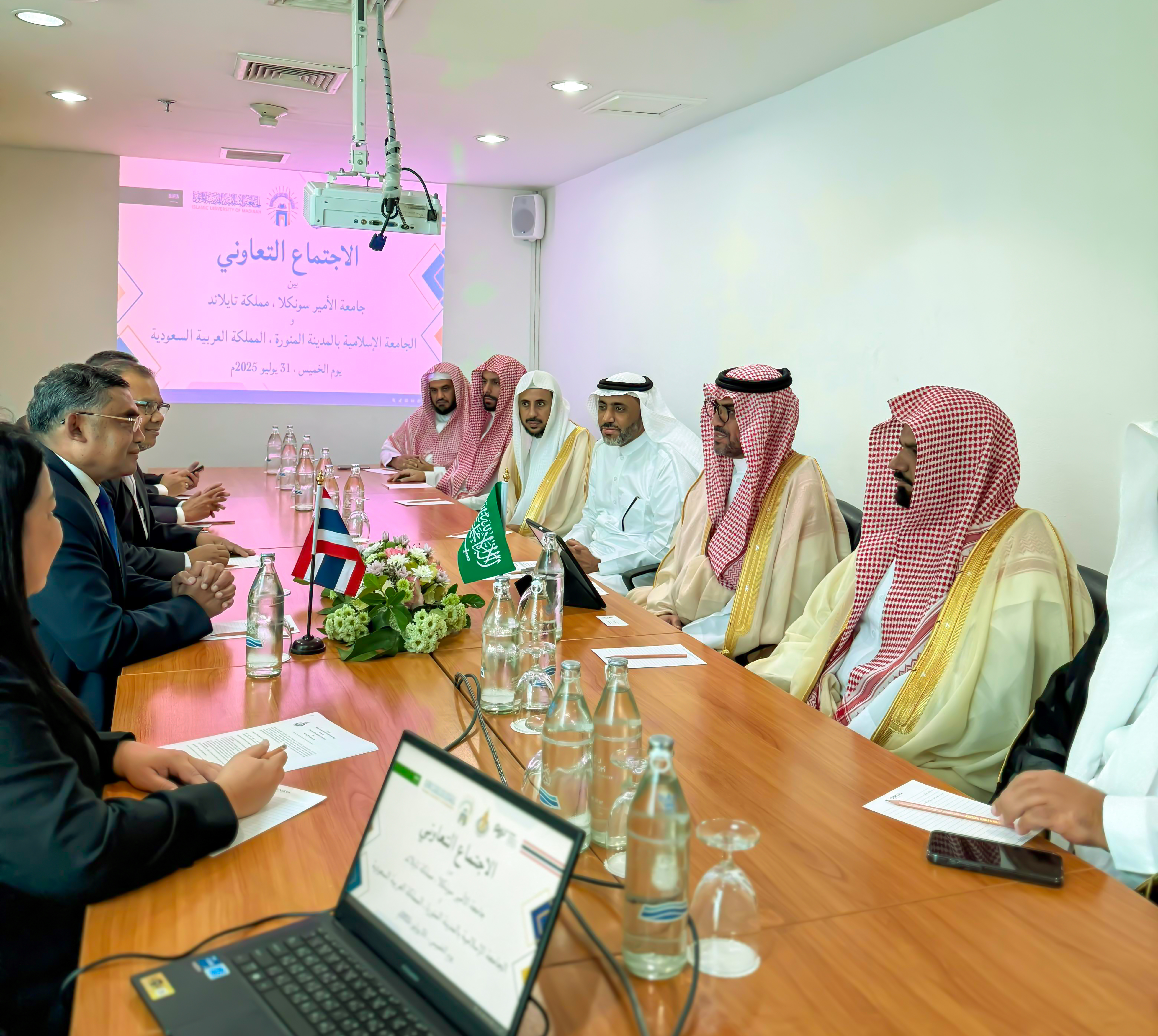 عُقد اليوم اجتماع تعاوني بين الجامعة الإسلامية وجامعة الأمير سونكلا بمملكة تايلاند، بحضور رئيس الجامعة د. صالح بن علي العقلا ورئيس جامعة الأمير سونكلا د. نيوات كيوبراداب.