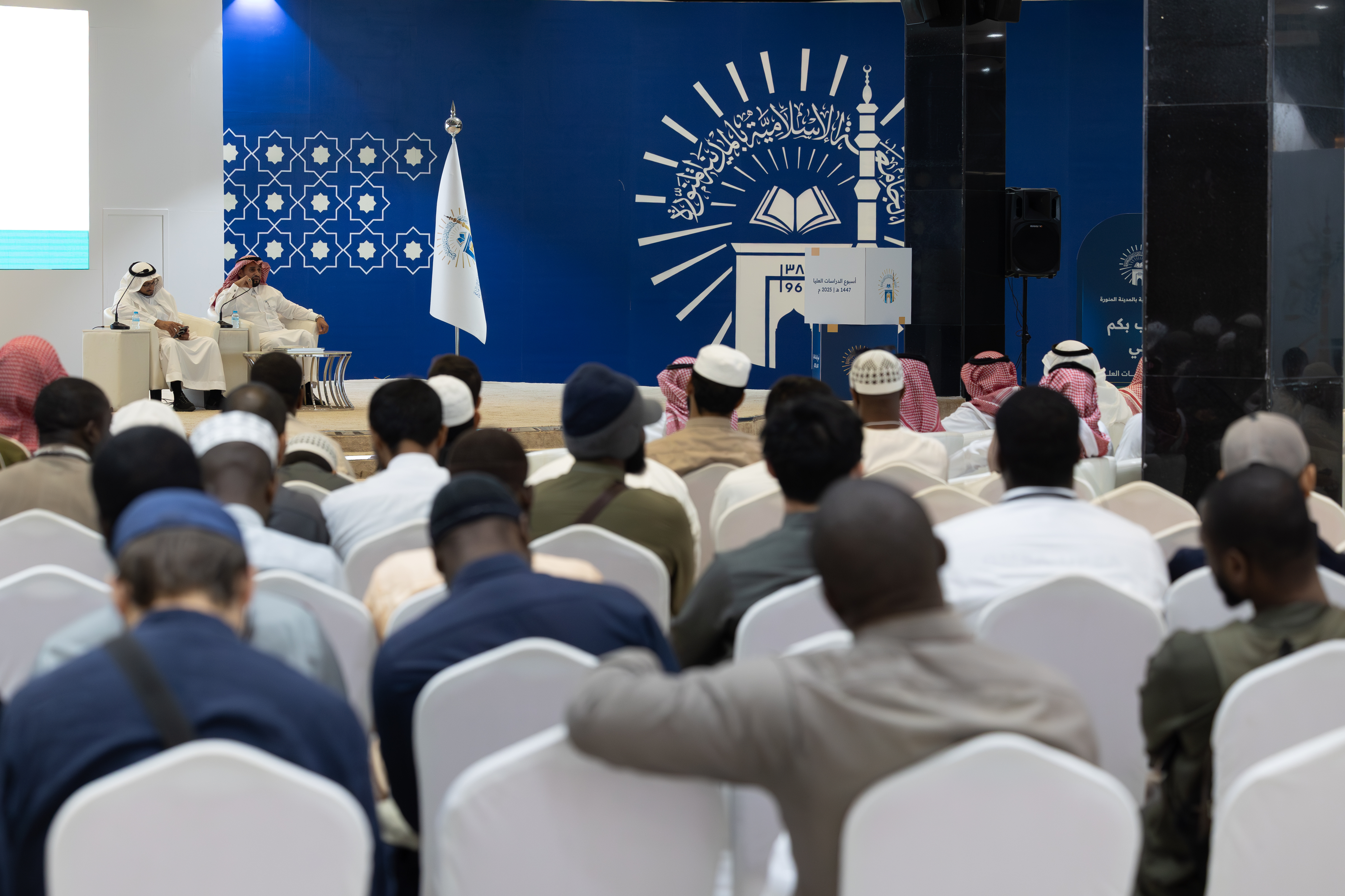 تحت رعاية رئيس الجامعة الإسلامية الدكتور صالح بن علي العقلا، أقيم اليوم حفل تدشين فعاليات أسبوع الدراسات العليا الأول تحت شعار "تمكين وتطوير"، وذلك في قاعة السلام خلال الفترة من 9 إلى 13 نوفمبر 2025م، بحضور وكلاء الجامعة، وعمداء الكليات، وأعضاء هيئة التدريس، وطلاب الدراسات العليا.