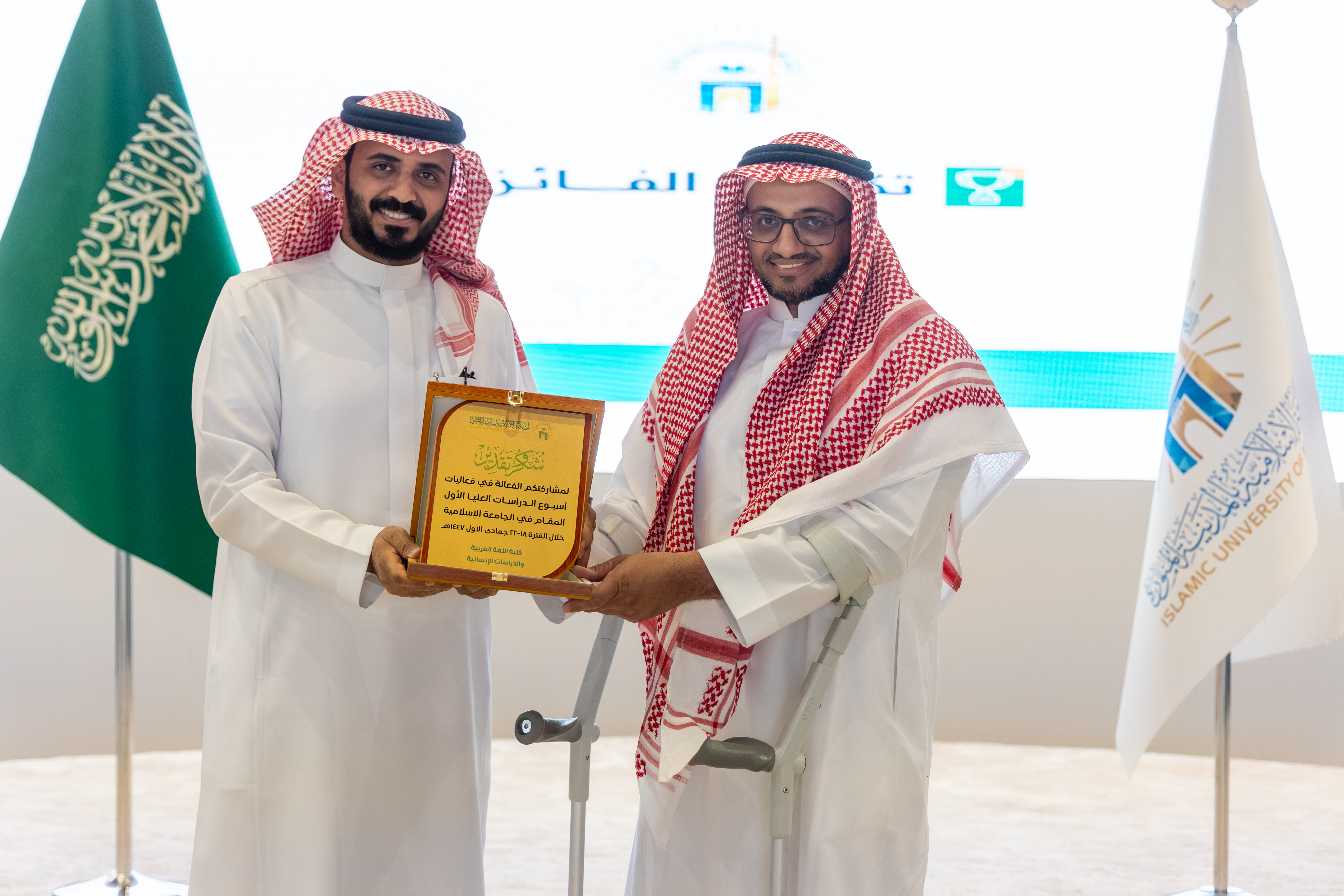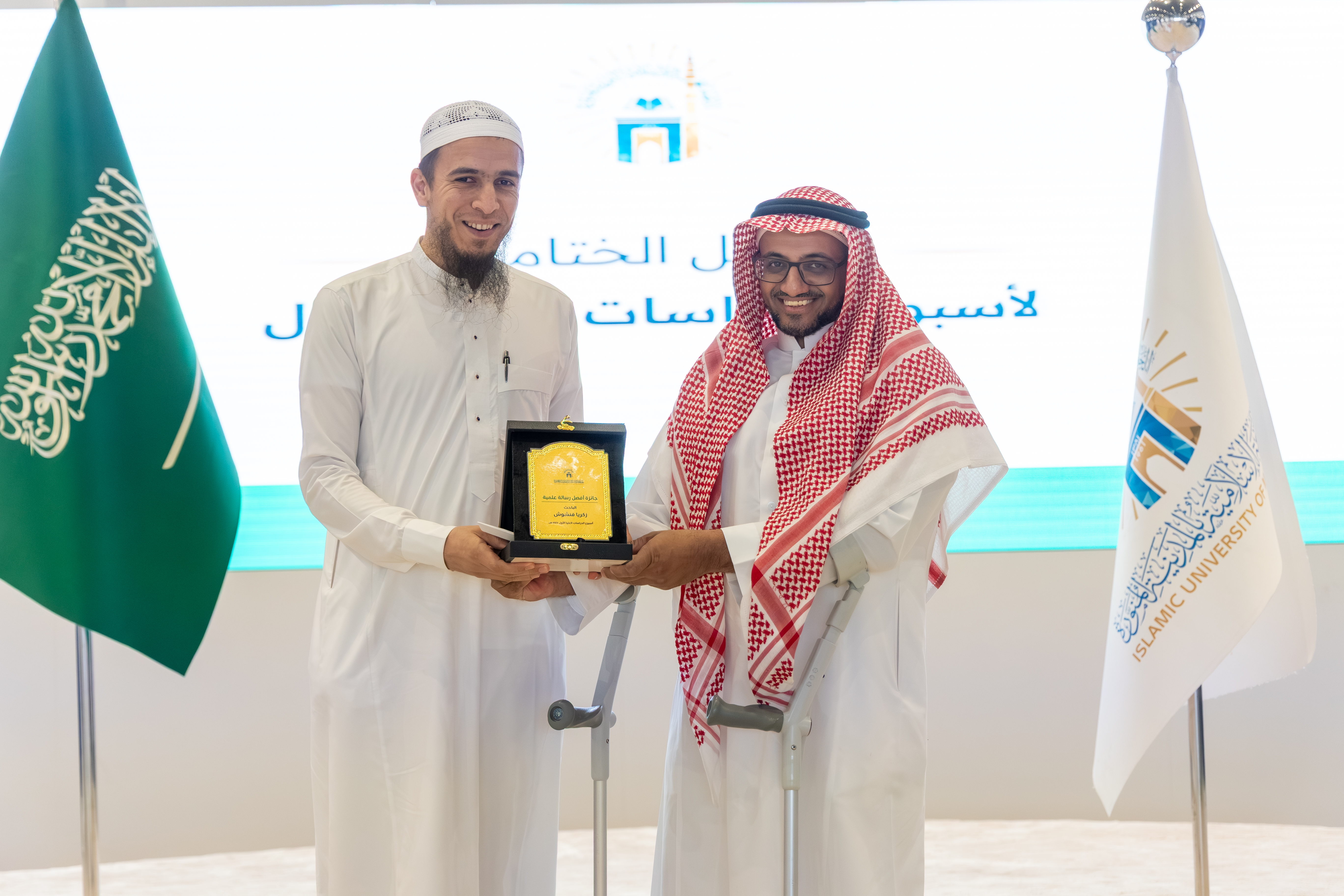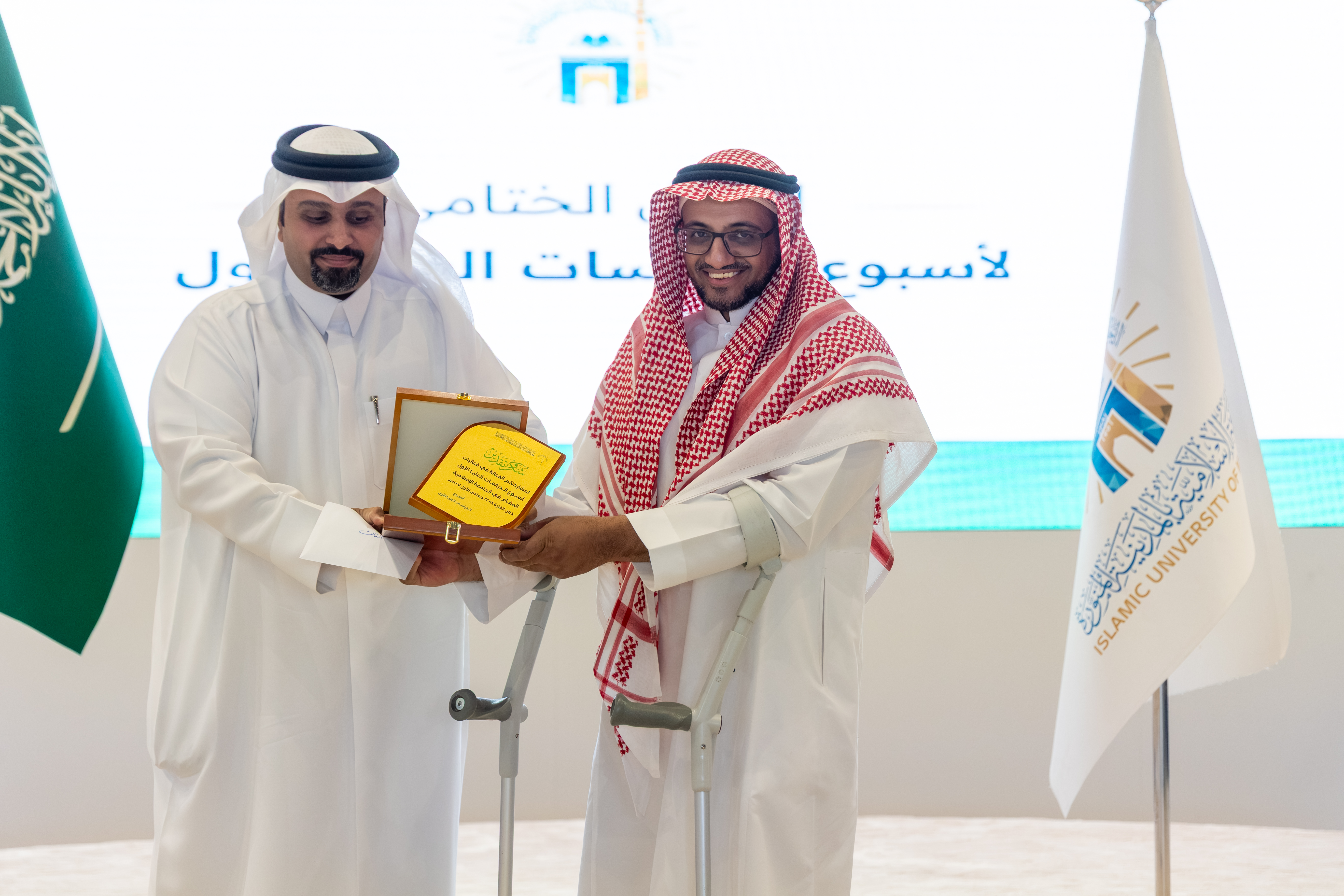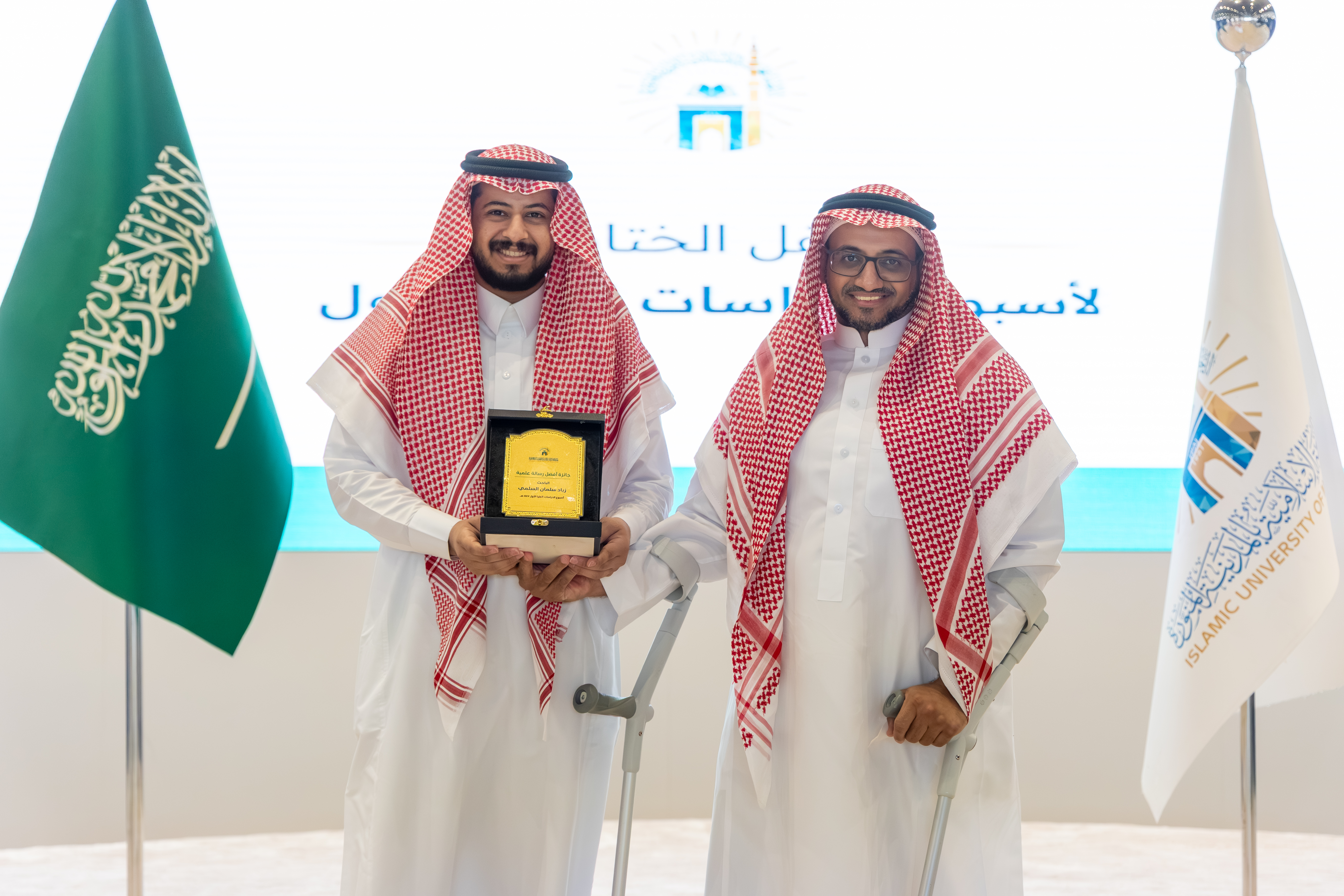 وشهد الحفل كذلك تكريم الفائزين بجائزة أفضل رسالة علمية في كليات: الشريعة، القرآن، العقيدة، القانون، الحاسب، الهندسة، والعلوم، إضافة إلى تكريم الطلاب الفاعلين من نادي الدراسات العليا تقديرًا لإسهاماتهم في نجاح الأسبوع.