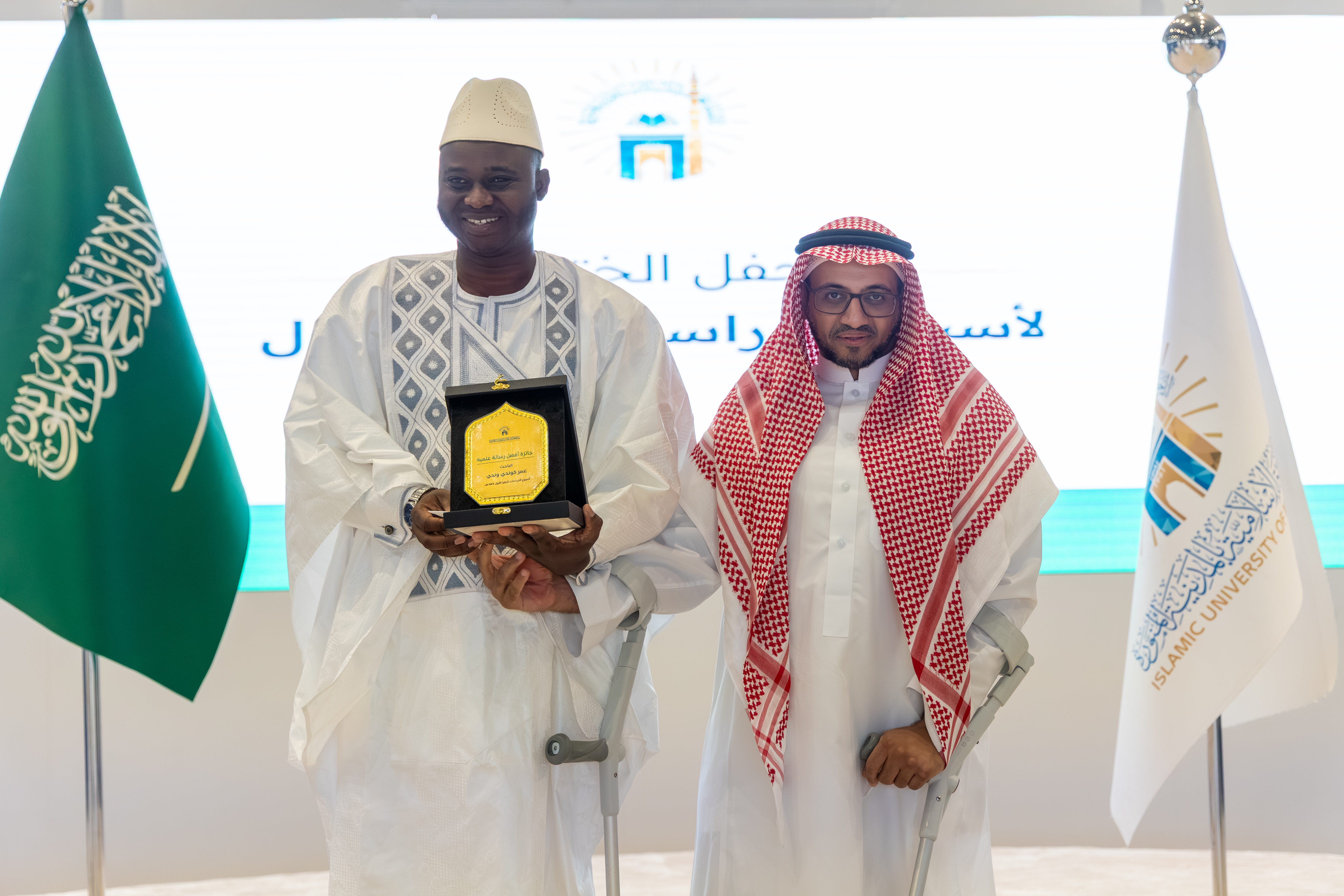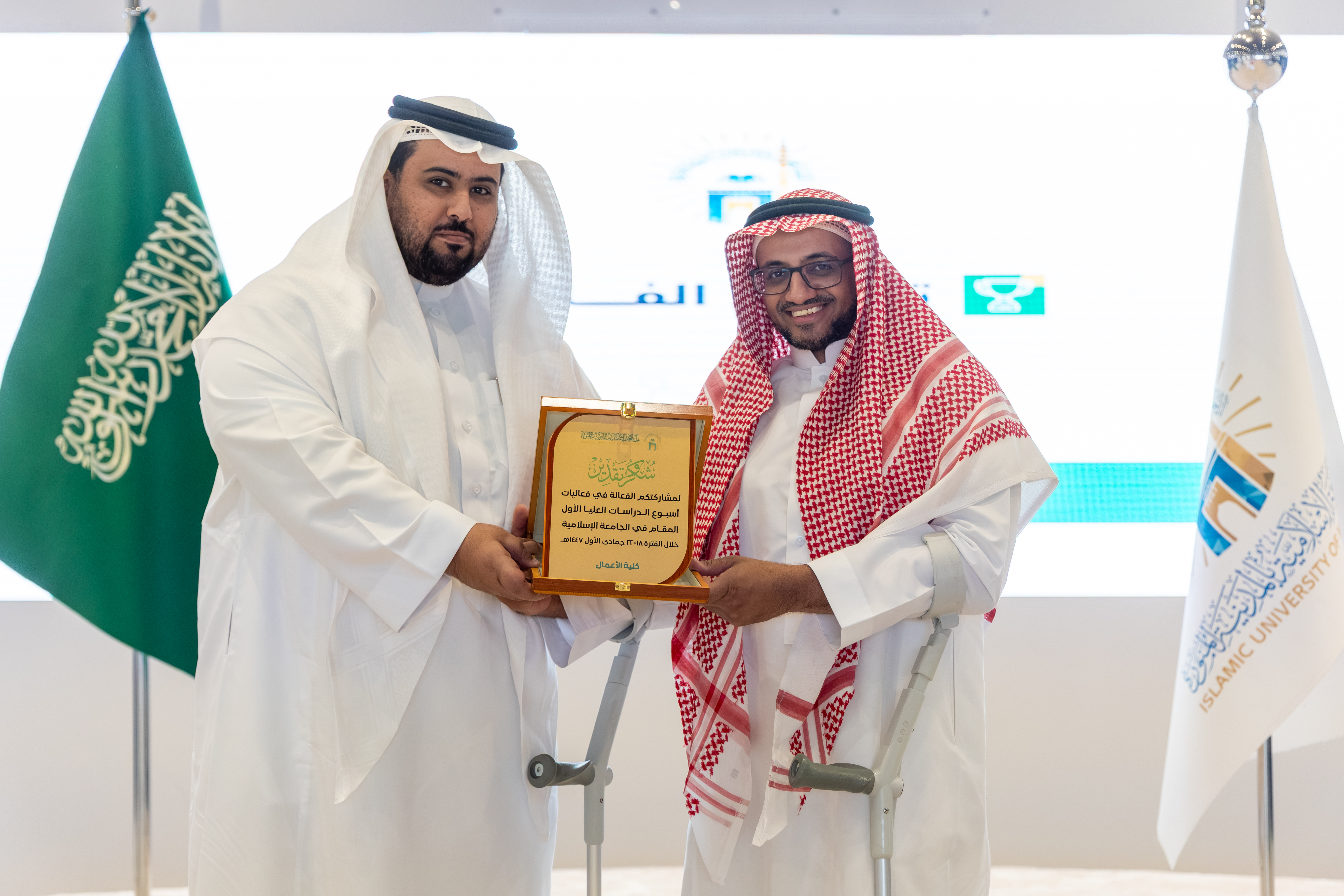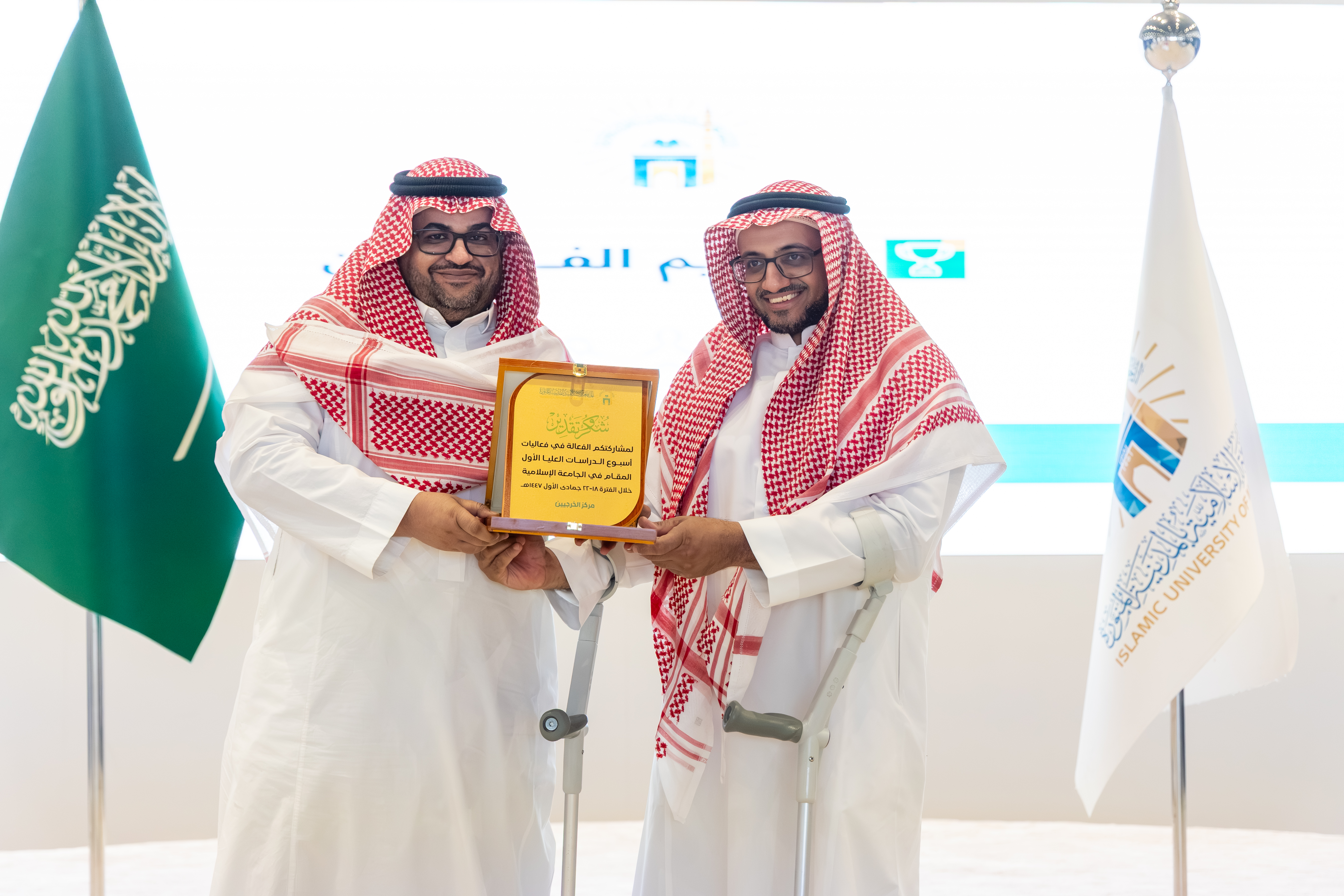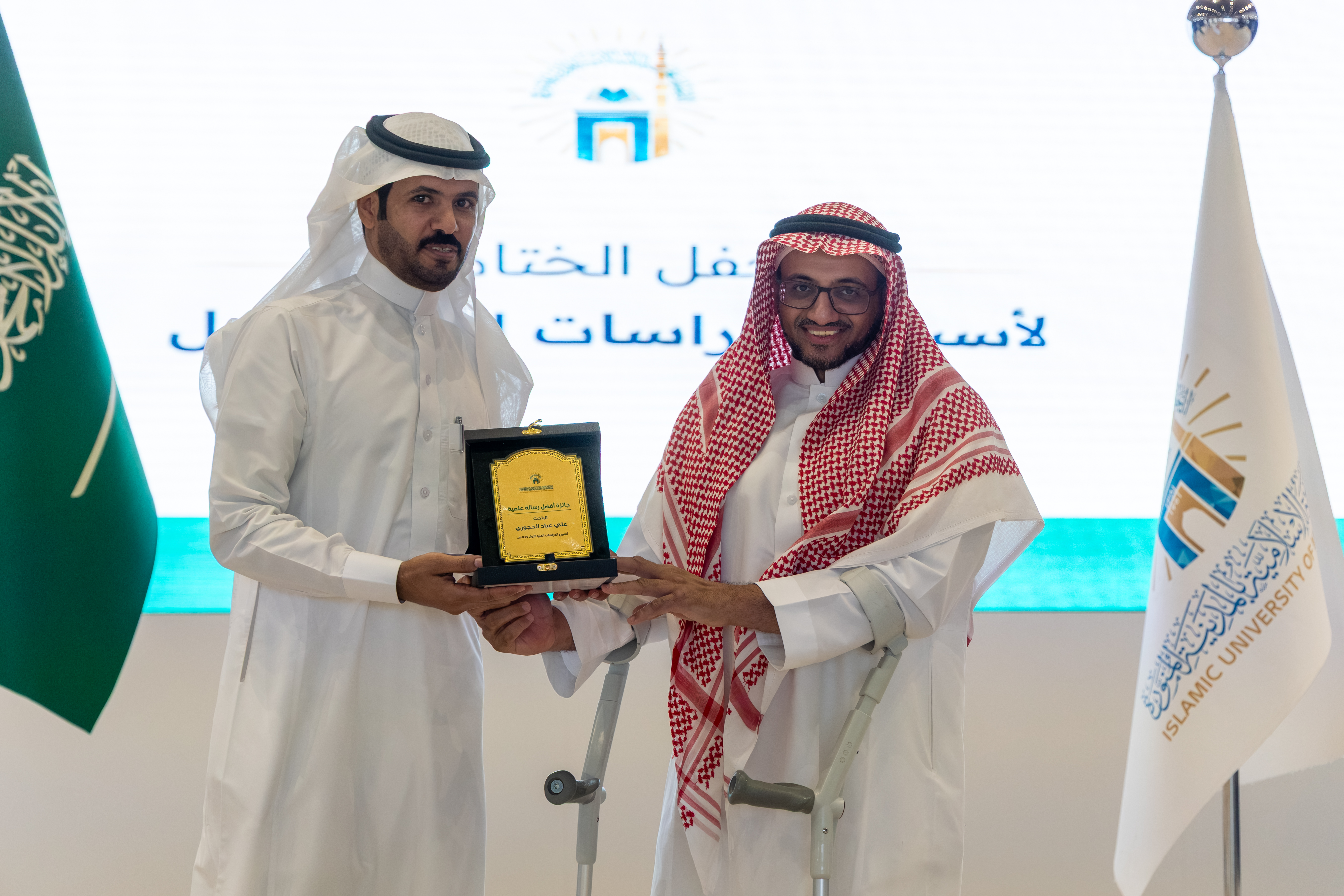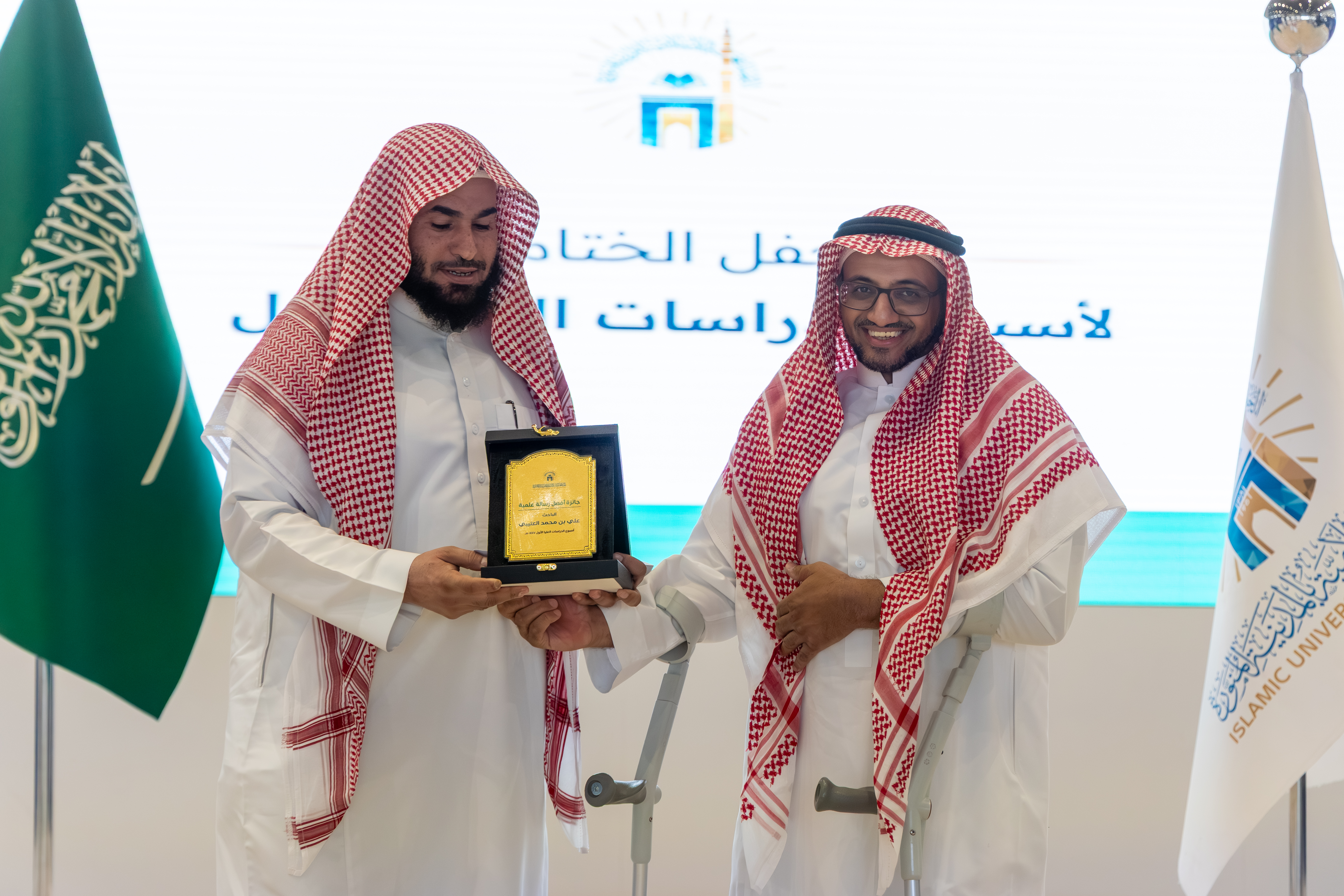 وشهد الحفل كذلك تكريم الفائزين بجائزة أفضل رسالة علمية في كليات: الشريعة، القرآن، العقيدة، القانون، الحاسب، الهندسة، والعلوم، إضافة إلى تكريم الطلاب الفاعلين من نادي الدراسات العليا تقديرًا لإسهاماتهم في نجاح الأسبوع.