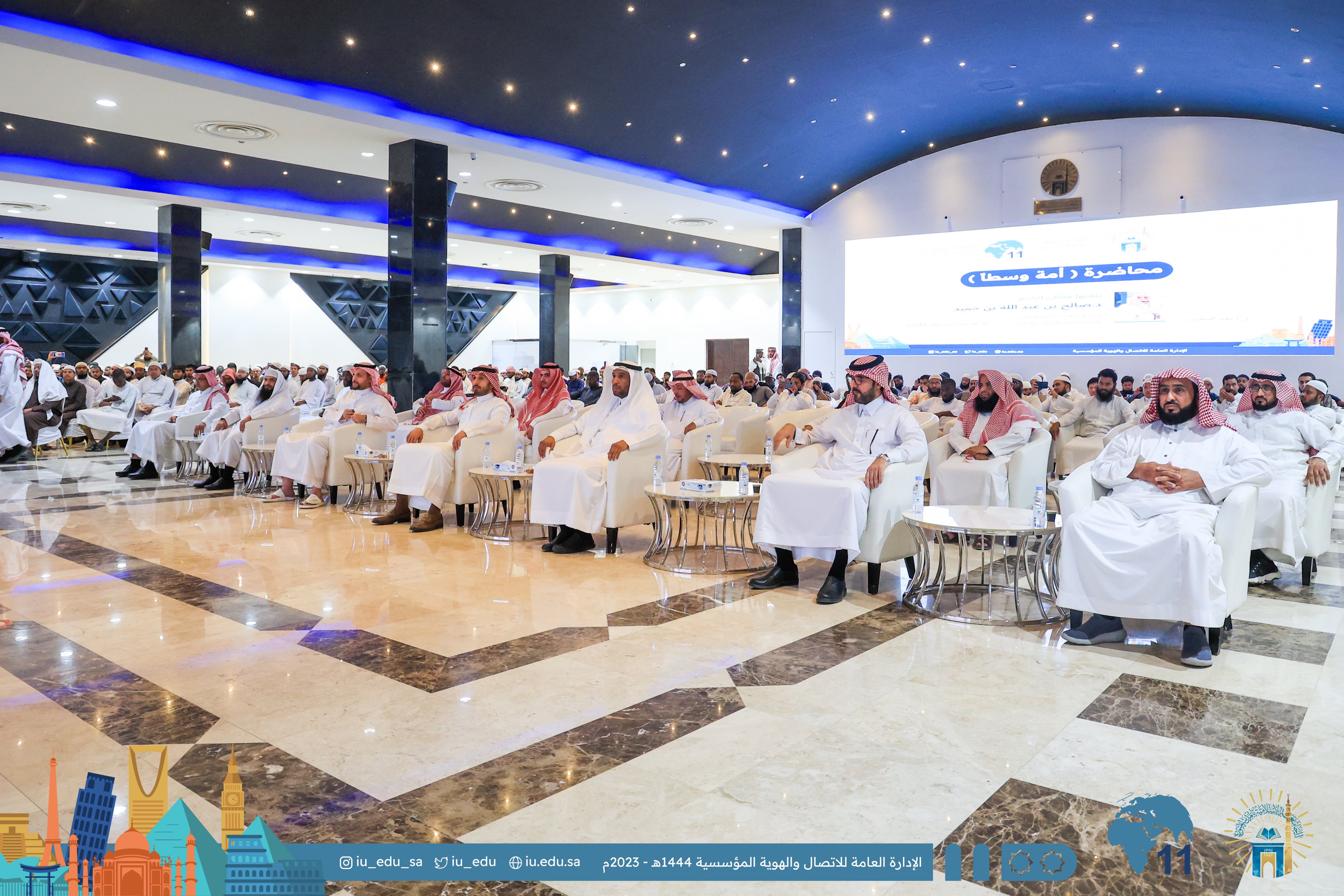 ألقى معالي الشيخ الدكتور صالح بن حميد في الجامعة الإسلامية محاضرة بعنوان: " أمةً وسطا" ، تحدث فيها عن أبرز قيم الوسطية وحقيقة ممارستها، وأشار فيها إلى أن الوسطية هي أسلوب حياة تجعل الإنسان يتعامل بطريقة سوية مع الآخرين، وأن الإنسان إذا خرج عن جادة الوسطية دخل في الجهالة.