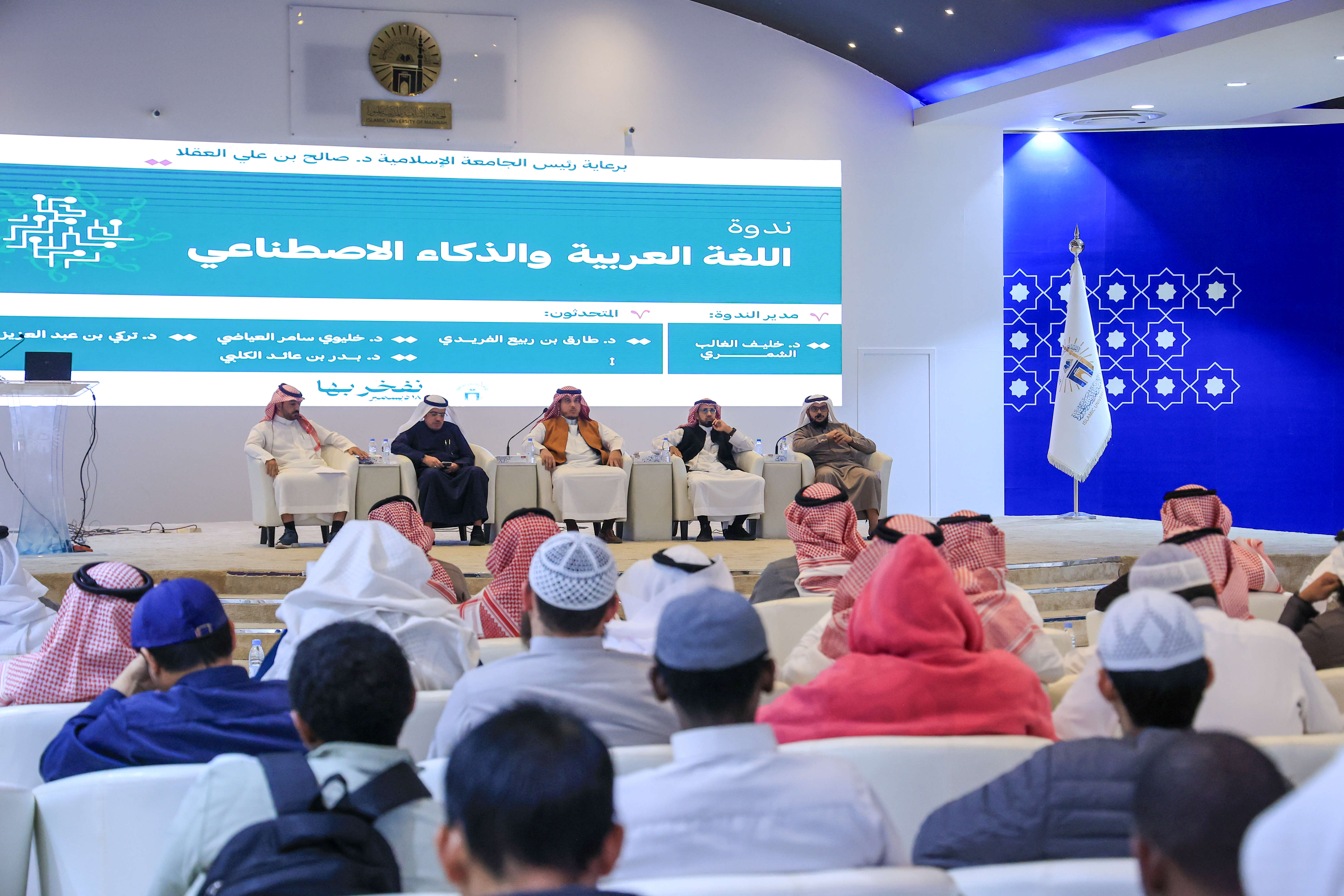وافتتح رئيس الجامعة الإسلامية د. صالح بن على العقلا فعاليات اليوم العالمي للغة العربية بندوة علمية بعنوان "اللغة العربية والذكاء الاصطناعي“، بحضور عددٍ من وكلاء الجامعة، وأعضاء هيئة التدريس، والطلاب.